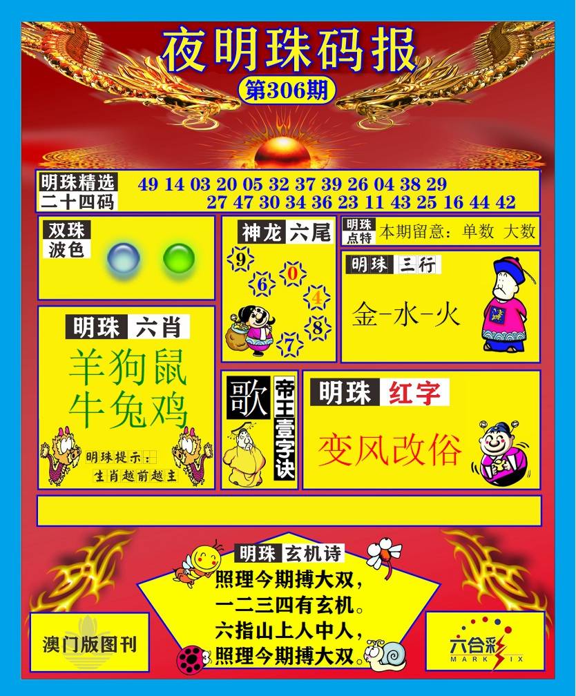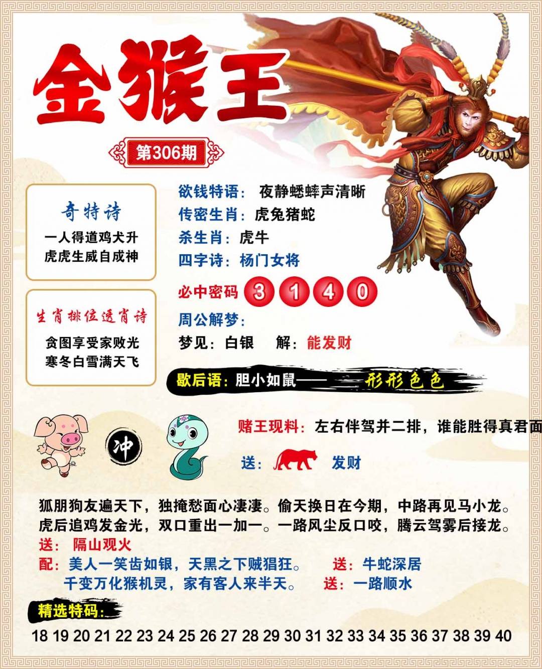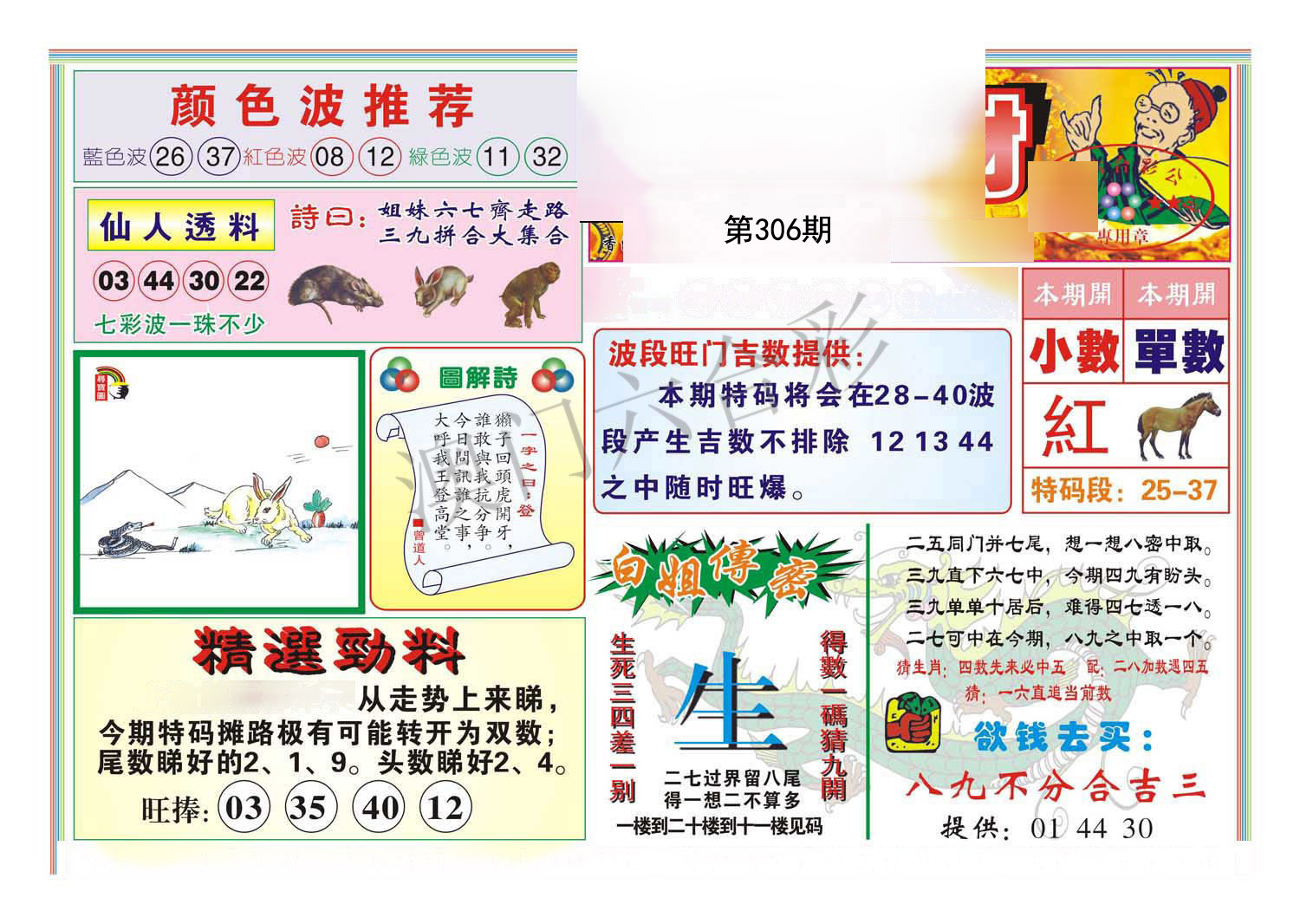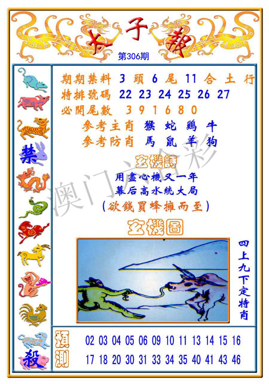 | 306期;【兔龙狗马蛇鼠虎猴猪】开:?00 |
