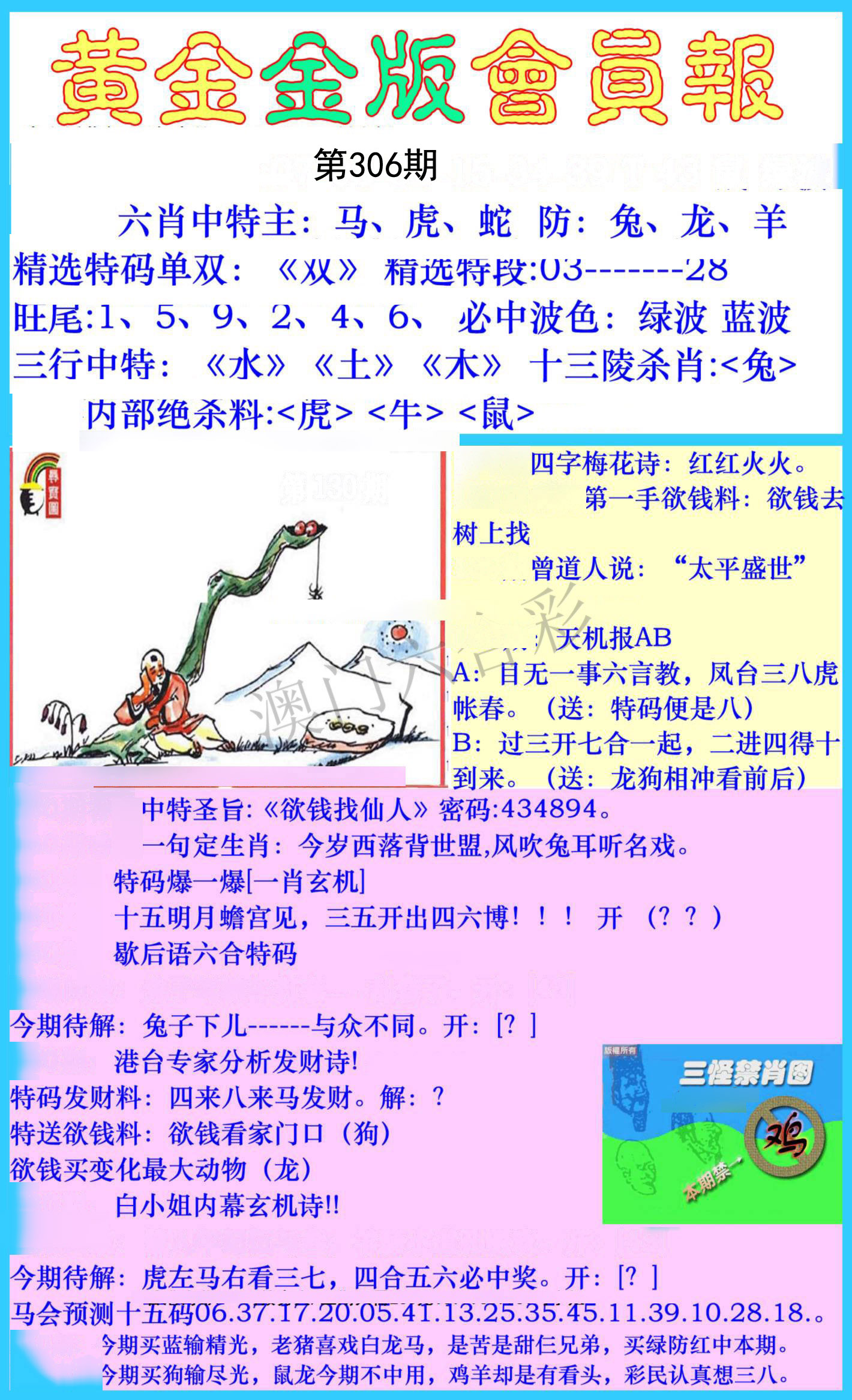304期金牌③肖【鼠马兔】开:蛇49 |