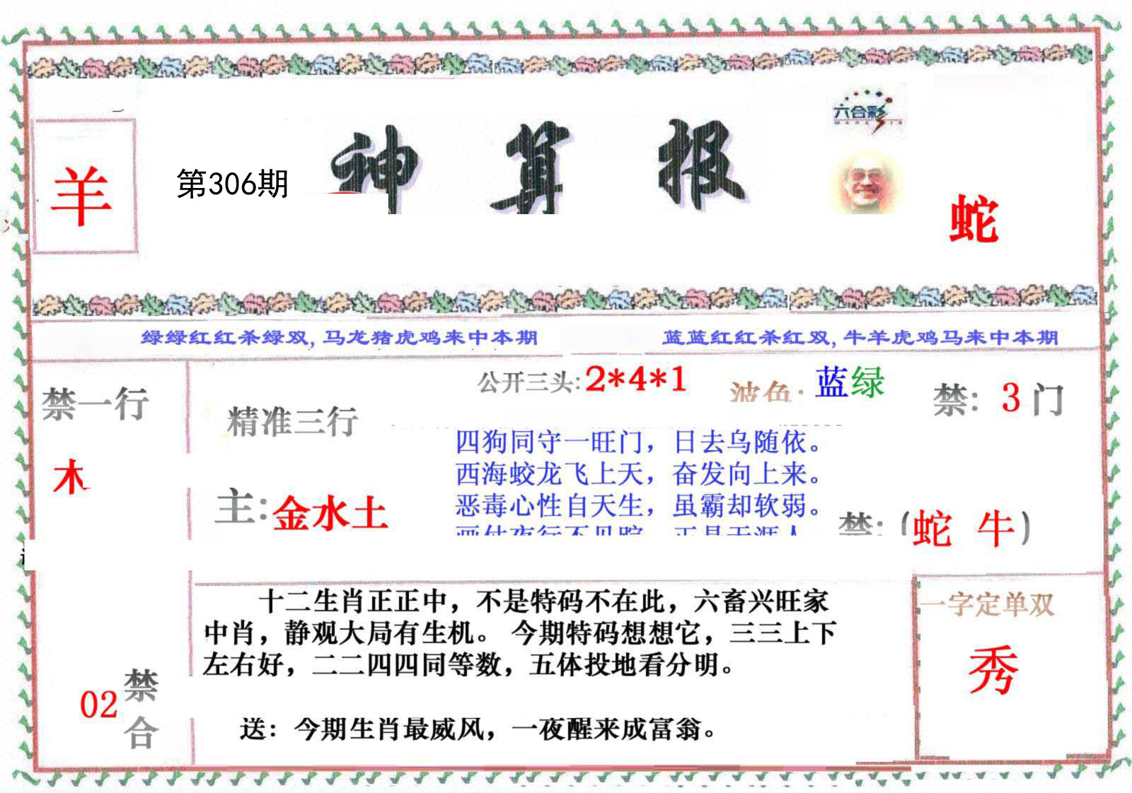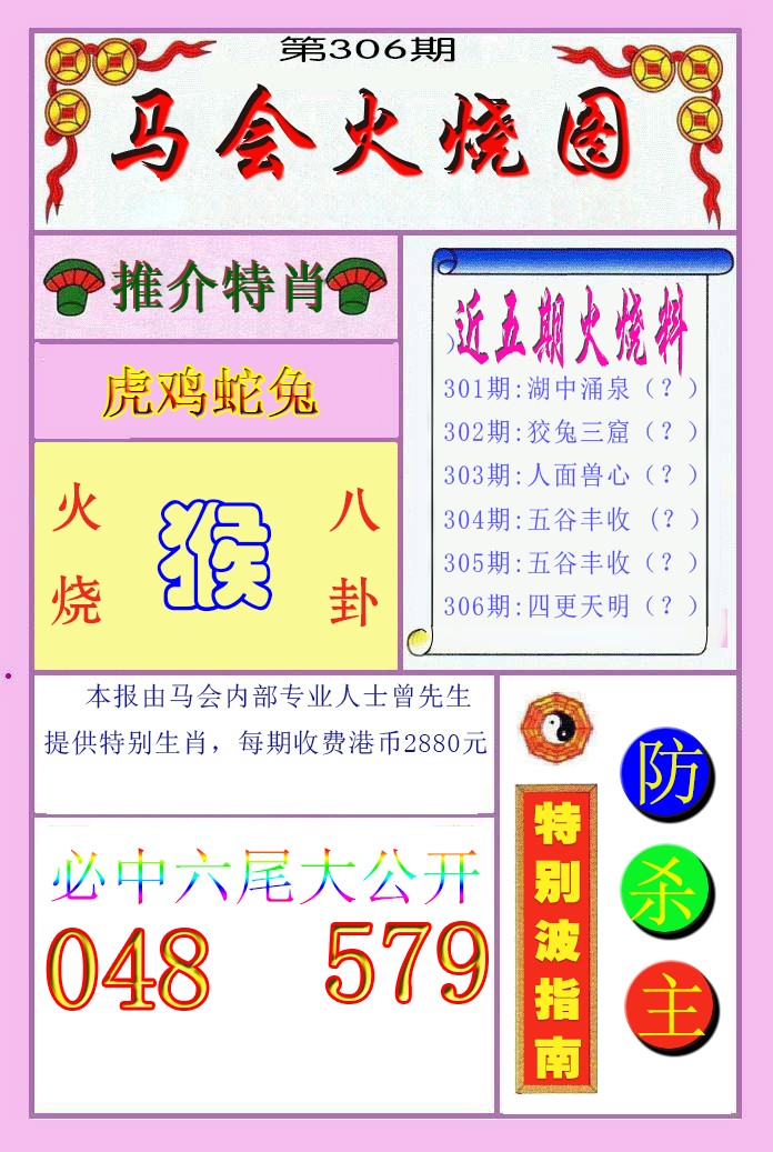 | 306期;绝杀【兔肖】绝杀【4尾】开:?00 |