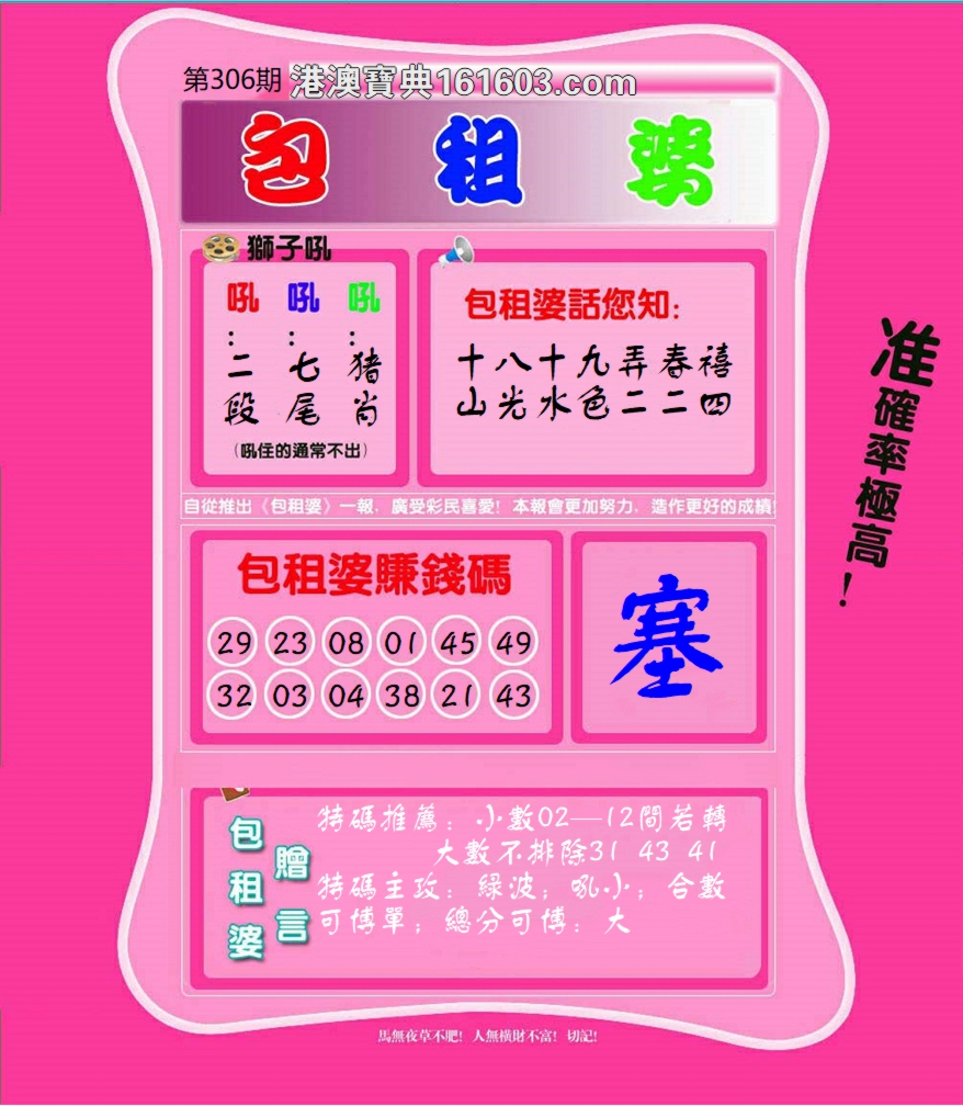 | 306期;平特①肖【猪猪猪】 |